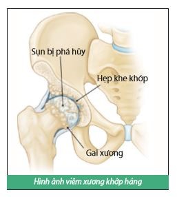 Viêm xương khớp: đây là dạng viêm khớp do tuổi tác làm hao mòn, thường xảy ra ở người từ 50 tuổi trở lên và có tiền sử gia đình bị viêm khớp. Phần sụn khớp làm đệm lót cho các xương ở khớp háng bị bào mòn. Khi đó, các xương sẽ ma sát với nhau, gây đau và cứng khớp háng.