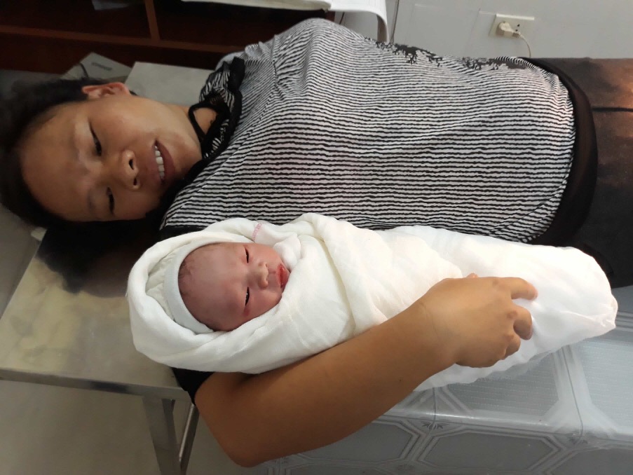 Đau đớn, bất ngờ và hạnh phúc là cảm xúc của chị L. ngay lúc này. Miềm hạnh phúc ôm con vào lòng sau giờ phút đau đẻ sinh nở căng thẳng.