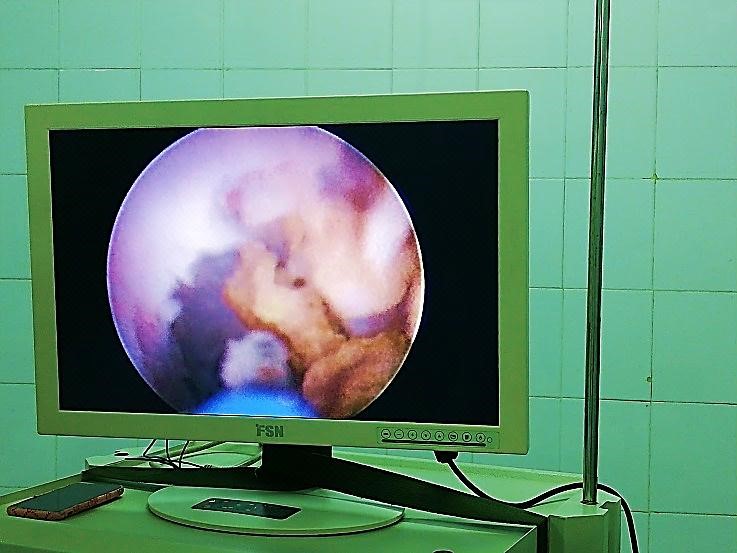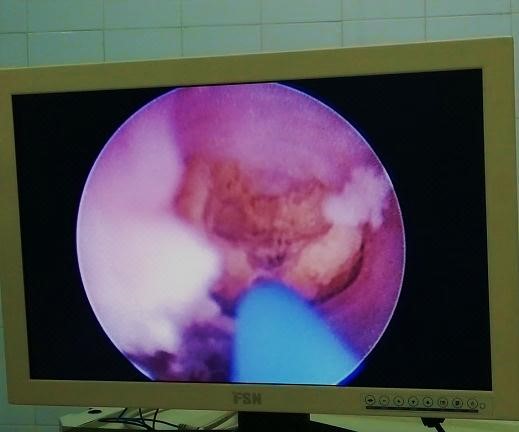 Hình ảnh tán sỏi niệu quản ngược dòng bằng Laser