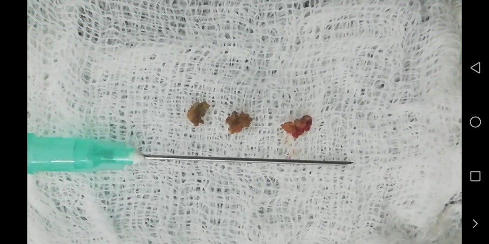 Hình ảnh sỏi niệu quản sau khi tán nhỏ được lấy ra ngoài